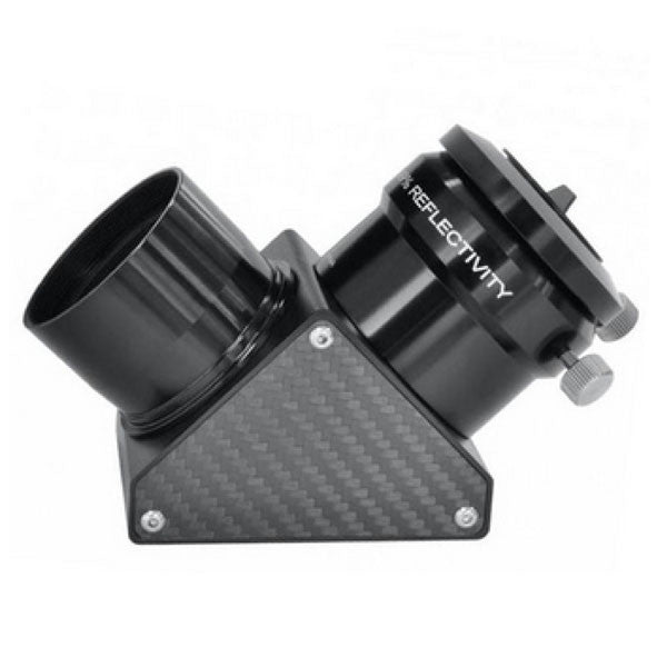 • The Explore Scientific 2-inch Dielectric-Coated Diagonal Mirror comes complete with 1.25-inch Adapter and dust covers. Solid construction and light weight, this first surface coated diagonal mirror reflects 99% of the light to help maintain the brightest possible image from your telescope.   The insert barrel is a double taper, so it can be smoothly inserted or withdrawn from the focuser. The wide part of the taper prevents the diagonal from accidentally falling out of the focuser if the set screw loosens up. Eyepieces are secured in the diagonal with a compression ring lock on both the two-inch eyepiece holder and the 1.25-inch eyepiece holder.