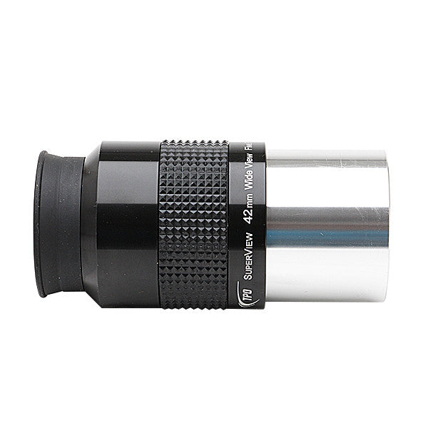 Fully multi-coated five element optics with blackened edges to minimize light reflection while maximizing contrast and light transmission. All SuperView eyepieces have a full 20mm of eye relief, making them a good choice for everyone, even those who wear eyeglasses. With impressive quality and appearance, the SuperView wide-field eyepieces feature a flawless chrome and black anodized barrel with a rubber eyecup and grip. The barrels are threaded to accept 2" filters. The TPO 42mm Superview Eyepiece is a great extended field eyepiece for longer focal length, good for large nebula and open clusters. For shorter focal length, they are fantastic for large objects such as the Orion nebula, views of the full lunar disc, large open clusters and more. This multi-purpose magnification range also makes for good "locator" eyepieces in all focal lengths. They are also well suited to shorter focal length telescopes for extended views and large, starry fields.