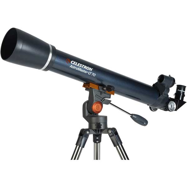 The AstroMaster LT 70AZ by Celestron is a highly portable 70 mm (2.76-inch) aperture achromatic refractor telescope at a great value, ideal for any astronomer on the go looking into planetary observation. It produces high clarity and high-quality views of the moon, planets within our solar system, and other similar targets! It is quick and easy to set up without any need for tools, and the altitude-azimuth (AZ) mount is easy to use. It's a great place to start for any astronomer!
