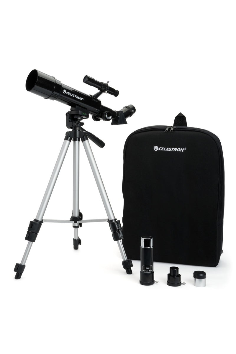 The Travel Scope 50 Portable Telescope by Celestron is a 50 mm (1.97-inch) aperture Achromatic Refractor telescope in a custom backpack.