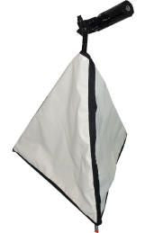The cover can be positioned several ways. You can place it low on your mount around the mount's base area. Or, because the cover top opening can be expanded up to a 27 inch circumference, you can place the cover high on you mount to protect sensitive electronics and motor drives from moisture. Using the cover in the manner just described can be done during observing sessions if you are experiencing a particularly heavy dew environment. During observing, reaching tripod accessory trays can be easily achieved by simply opening a portion of the Velcro which will allow you to access eyepiece storage or electronic control pads.