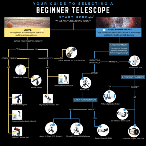Use the interactive Beginner Telescope Flow Chart to find what's best for what you want to do.
