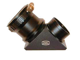 • Baader Planetarium has just expanded their innovation in star diagonals. With their ground-breaking introduction several years ago of their all-dielectric 2" Maxbright star diagonal, Baader brought mirror star diagonals into the 21st century. The mid-size, flexibility, and cost of the T-2 Maxbright Mirror Diagonal make this the ultimate diagonal for high power planetary viewing, or in systems where back-focus or space is limited and a full aperture 2" diagonal will not work or is not flexible enough. The T-2 Maxbright Mirror Diagonal uses the proprietary Baader Maxbright all-dielectric mirror coatings. This process results in an amazingly high 99% photo-visual reflectivity. The unique Baader coating system has also been specifically optimized to minimize scatter, and does NOT degrade mirror flatness. The zero expansion mirror substrate retains its true 1/10 wave (p-v) flatness over the entire oversized 35mm (1.38") mirror surface! This allows the mirror to be used well in front of the image plane with no image degradation or astigmatism from a warped mirror surface. In addition, the extreme coating hardness makes the Baader Maxbright highly durable (the coatings are harder than the glass itself!). The Maxbright mirror coatings will last lifetimes without losing reflectivity, and may be cleaned with normal care, without fear of scratches. T-2 System Design: Like its correct-image sibling (the Precision Amici Diagonal), the design of the T-2 Maxbright Mirror Diagonal enables it to be configured to exactly suit your needs. The input and output T-2 threads integrate with the full range of Baader Astro T-2 System components. It can be configured to install in 2" or 1.25" focusers, for use with all 1.25" eyepieces and even many 2" eyepieces! It is also the perfect diagonal for use with the Baader/Zeiss Giant Binoviewer (replaces the normal prism diagonal). Not just a visual accessory, this diagonal also integrates well into digital imaging applications. Please see the T2 Diagonal Configuration page in the "Articles" section for some suggested configurations. Like all the Baader Planetarium products, the mechanical quality and finish are superb. The all-machined aluminum housing supports the mirror at the correct location and at a precise 45 degree angle, to maintain the collimation and performance of your optical system. Even the tiniest exposed lips are sharp V-threaded for stray light control.