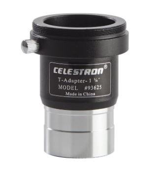 • The Celestron Universal T-Adapter 1.25-inch allows you to attach your 35 mm SLR camera to the prime focus of your telescope or spotting scope. This arrangement is used for terrestrial photography and short exposure lunar and planetary photography. It can also be used for long exposure deep-sky photography when using a separate guide scope.