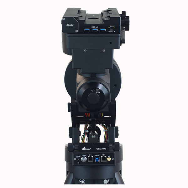 Innovative operational features such as the internal iPolar electronic polar scope, easy lock drive gear engagement (levers large enough to use with gloves), an advanced cable management system for the mount, iPolar, iGuider (guider, and camera), and cumulatively assure users the CEM70 (for this choice see item #IO-CEM70) and this model CEM70G designed with their needs in mind. On top of the built-in guiding system the CEM70G also comes standard with WiFi and USB 3.0.