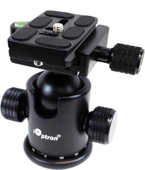 This iOptron high quality ball head enables you to control your camera precisely and seamlessly for panning and tilt motion. It features a 2-inch wide base that allows a 360 degree pan rotation. With the universal quick release plate, the iOptron Ball Head is suited for all major brands. Once the camera is mounted, it can be secured by the available plate and safety lock.