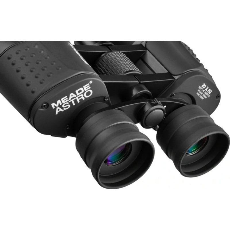 • Bright and sharp with tons of light gathering power, the Meade 20x80 Astro Binoculars are among the best valued binoculars for star gazing. Enjoy the high-end features that observers look for such as fully multi-coated lenses, BAK4 porro prisms, and long eye relief — all while maintaining a very economical price.
