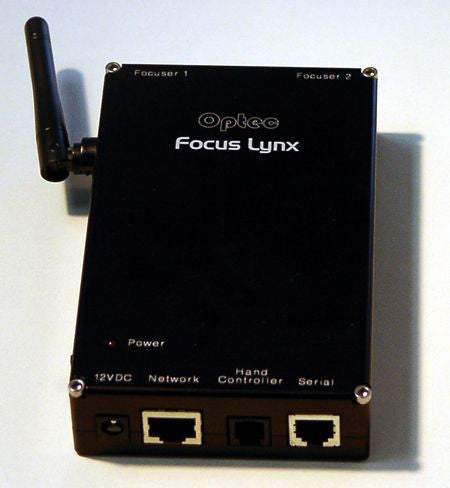 You can simply open up any focuser control program or Optec's proprietary FocusLynx Commander control software and you will be able to control each focuser the way you would without the hub. Optec also offers an optional FocusLynx Hand Controller (19695) that can be plugged into the FocusLynx to allow telescope-side control of each focuser. Additionally, if the hub is connected to a computer via wired or wireless ethernet, the FocusLynx will generate its own control webpage that can be accessed with any web browser or smartphone. Since this page is generated and displayed by the hub itself, once you are connected, there is no further configuration required: just attach your focusers and go!