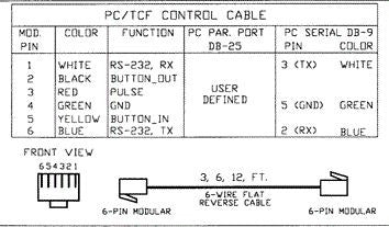 To attach the Pyxis to the COM (RS-232 serial) port of a computer requires a special cable. These cables are flat 6-wire stranded with RJ-12 modular connectors on both ends. They are typically refered to as reverse cables since each pin number on one connector is connected to the same number on the other end. To adapt the RJ-12 connect to fit the standard COM port on a computer (9-pin sub-D male), it is required that the PC Serial Port converter be purchased in addition to the cable. The reverse cable are available with standard lengths or a custom lengths up to 100 feet.