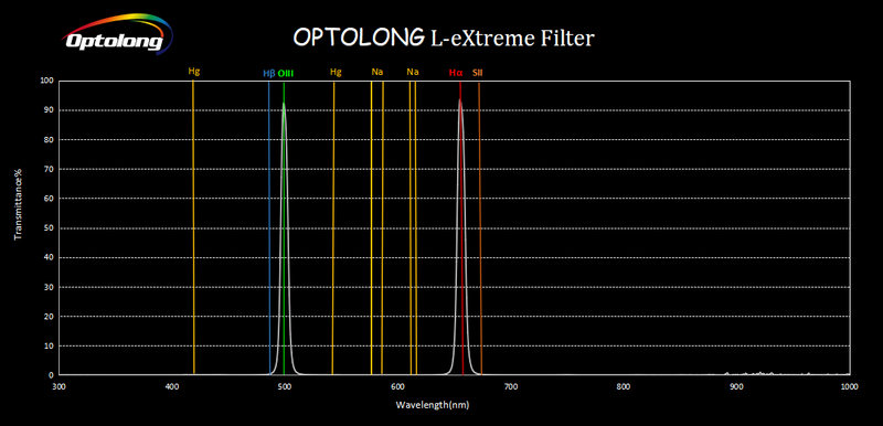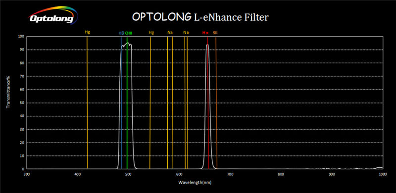 • High transmission at major nebula emission lines (i.e. H-alpha 656nm; OIII 496nm, and 500nm; SII 672nm; and H-beta 486nm)