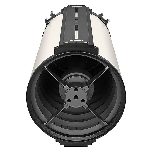• Hyperbolic primary and secondary mirrors made of low-expansion quartz glass with enhanced aluminum coatings boast 96% reflectivity for bright imaging performance, and the secondary mirror is precisely center-marked to aid in collimation