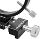 Each guide scope ring is mounted on a riser block, which is attached to a black-anodized aluminum dovetail clamp that is machined with two grooves that can accommodate either Vixen or Losmandy style dovetail plates. The clamps expand using internal spring action when the lock knob is loosened. Each clamp has a large aluminum knob that makes it easier to install and lock down the clamp.