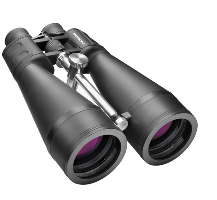 Providing pinnacle-performance views at a bargain-basement price, our new Orion 20 x 80 Astronomy Binoculars pack a visual punch usually reserved for astronomy binoculars with a much larger price tag. With top-quality features such as high-transmission BAK 4 prisms, fully multi-coated optics, and gigantic 80mm (3.14") aperture objective lenses, the affordably-priced Orion 20 x 80 Astronomy Binoculars will astound you and your friends with its amazing viewing capability.The giant 80mm objective lenses gobble up light from objects in the night sky, yielding bright views with exceptional contrast and sharpness. These big and powerful binoculars gather over 30% more light than 70mm aperture models for brighter views of cosmic curiosities. An integrated heavy-duty tripod adapter lets you easily attach the binocular to any field tripod or binocular mount, which is recommended for extended use. So go ahead, grab more light from the night sky with a pair of Orion 20 x 80 Astronomy Binoculars tonight!