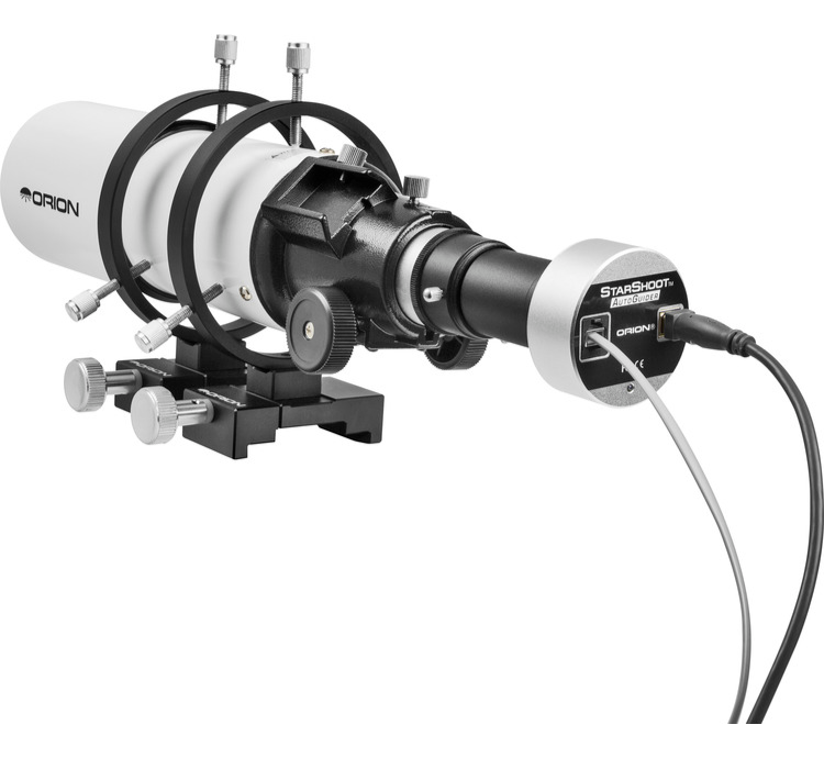 • Orion ShortTube 80 mm Refractor Telescope - with a focal length of 400 mm, this telescope provides an exceptionally wide field of view with its compact size, making guide star acquisition super simple. It has an all-metal focuser with drawtube lock that provides sturdy support for the autoguider camera. The dovetail shoe that is molded into the focuser accepts optional Orion finder scopes.
