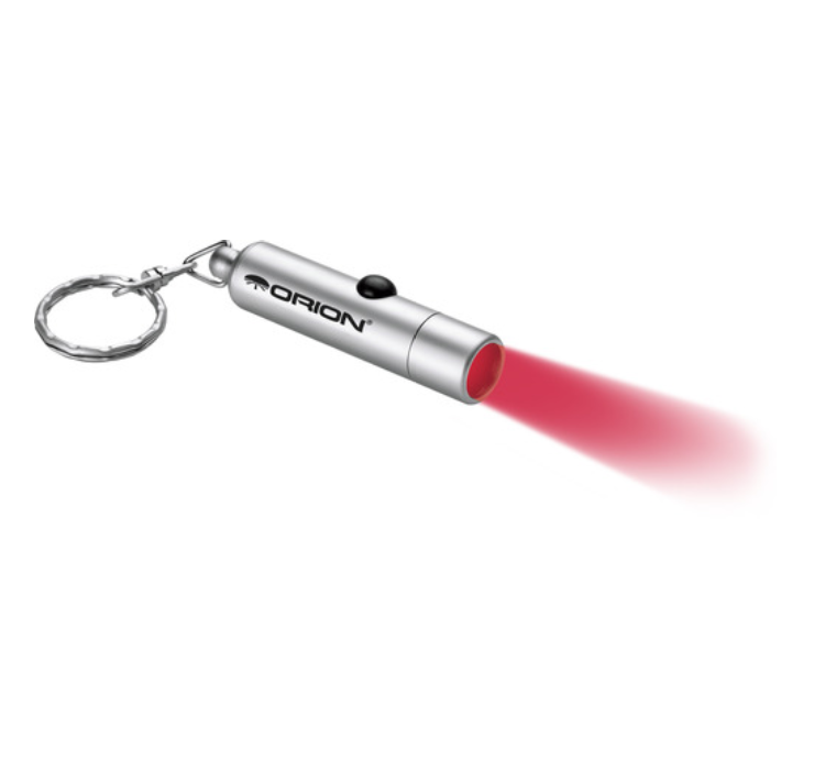 This compact aluminum Orion 2.5-inch-long RedBeam Mini Flashlight is the perfect accessory to bring along when light is needed during observations. No more struggling with reading your star maps in the dark, the 2.5-inch-long RedBeam Mini Flashlight releases night-vision red LED Light with an easy to use rubber on and off switch. Purchase includes batteries and a key ring. Manufacturer Product Number: 05768