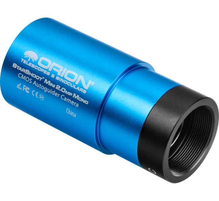 • If you're on a quest to improve your astro-images, one of the first places to focus on is the quality of your guiding. Look no further than the Orion StarShoot Mini 2mp AutoGuider Camera. This autoguider and imager represents the next generation of sensitivity and accuracy! This incredibly sensitive camera uses the Sony IMX 290 monochrome sensor, which features a 12-bit image and vanishingly small 2.9 micron pixels. And with a quantum efficiency of around 80%, stars will be visible in any area of the sky you point your guidescope to -- no need to readjust the guidescope positioning to find that "bright" star to lock on to! And as a bonus, the exposure range for this camera spans 0.105ms - 1000s, so you can even use the camera to image a range of objects, from bright planets to faint deepsky objects.