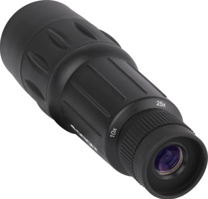 • When you're looking for a conveniently-sized piece of optical gear to use for close-up views of distant objects, you should invest in a quality monocular. They're less bulky and cumbersome than binoculars or spotting scopes. to take with you to sports games, camping trips, or other excursions. Orion's Zoom 10 to 25x Magnification Waterproof Monocular is super compact and portable, making it the perfect partner for magnified viewing of wildlife, scenery, and even the Moon without tons of equipment.