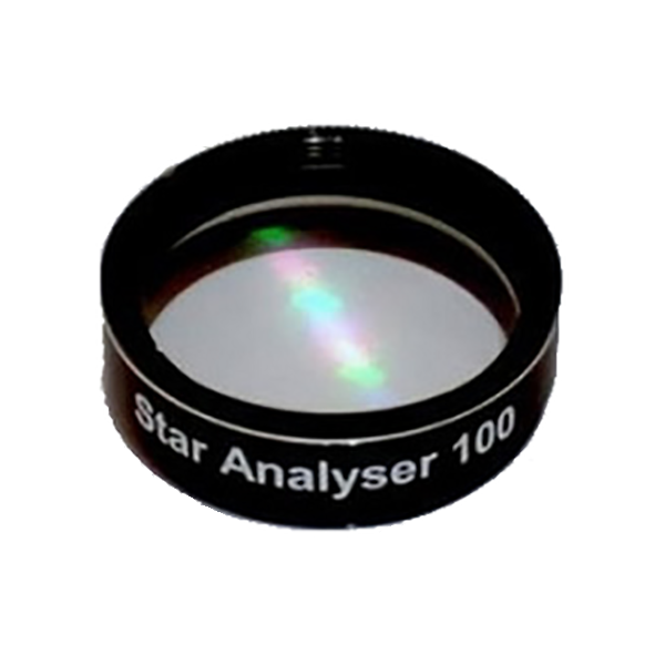 • The Star Analyser 100 from Shelyak Instruments: is a high efficiency 100 lines/mm transmission diffraction grating, blazed in the first order.