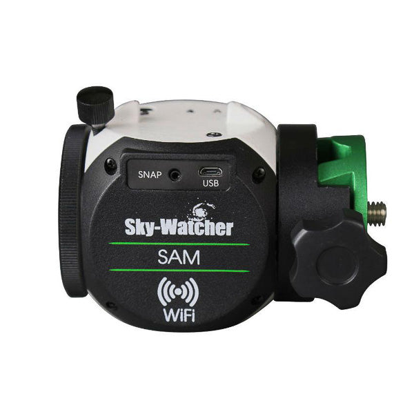 • Sky-Watcher's Star Adventurer Mini is a lightweight and highly portable tracking platform that is sure to satisfy your need for a dependable and user friendly astrophotography mount. The Star Adventurer Mini, or 'SAM', is a great choice for the astrophotographer on the move due to it's small size and low weight combined with its highly precise tracking capabilities. The SAM can transform almost any tripod into a useful and precise equatorial mount, letting you setup almost anywhere as your needs change and evolve. The SAM can serve as both a splendid tracking platform or a compact travel mount, and excels in both functions. It is compatible with a wide array of accessories, and hosts a V-Style dovetail saddle that can be used to mount a ball-head for easier camera movement and control.
