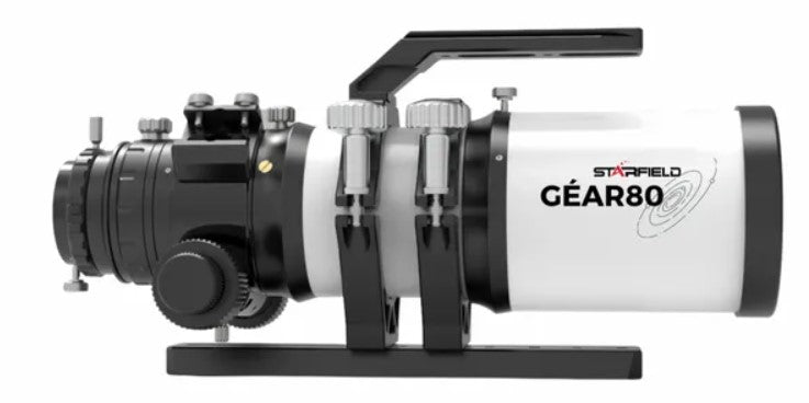 • The Starfield ED80 f/6 Triplet APO will take your wide-field imaging game to new levels. Using FPL53 (Ohara, Japan) optics, this telescope comes standard with heavy-duty rings, extra-long vixen style dovetail, and a handle designed to mount accessories.