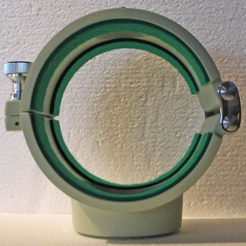 The Takahashi TSA0121 Tube Holder was designed specifically for the Takahashi TSA-120 and FSQ-ED (same as TFK-1010-NU but does not include offset plate. The offset plate is for achieving proper balance of the FSQ-ED when imaging equipment is attached.) This perfectly machined part is powder coat Takahashi green and felt lined to protect your optical tube's finish. The Takahashi TSA0121 Tube Holder is secured by chrome hand locking set bolt. Smooth opening hinged body for easy tube insertion. Takahashi Product Number: TSA0121
