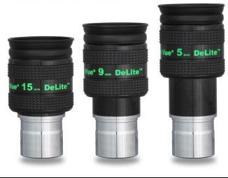 The 15mm DeLite eyepiece by Tele Vue is the logical evolution of the Delos series. With slim and lightweight design in mind, the DeLites are the more economical version of their predesessor. Featuring a 62 degrees apparent field of view and Televue's unparallelled optical quality and performance, the Delites are an optimal choice for planetary observing. Each Delite eyepiece has a 1.25" barrel and is parfocal with Televue's 1.25" Plossl, Panoptic, Nagler and Delos eyepieces. With 20mm of comfortable eye relief, unique sliding/ locking eye guard, all Delite eyepieces are Dioptrix ready.