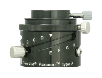 • The Tele Vue Tunable Top with a 1.25-inch Adapter (model #TE-ATT-2125) is the tunable top version of the standard 2-inch Paracorr Type 2. It lets the user position all eyepieces for optimum coma correction. For use on the BIG Paracorr, the "VISA" (Visual/Imaging System Adapter, sold separately) is required. A 3-inch Tunable Top is not required since secondary mirror size limits maximum exit pupil diameter to around 7 mm. Therefore, the widest true field eyepiece choice with an f/3 is the Tele Vue 21 mm Ethos eyepiece, which delivers a 6.1 mm exit pupil at f/3.45.