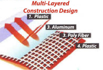Have you ever been at a star party and wished you could protect your valuable optics from the heat of the day? Do you set up your telescope in advance and want to keep it protected? What about night? There's times when you wish you could cover your scope while taking a break or waiting on the clouds or dew point to pass. Don't use a trash bag... Use a Tele Gizmo Solar Telescope Cover! The new TeleGizmos Solar Telescope Cover is a multi-layer, polyethylene material with a fully aluminized surface. Both you and your telescope will appreciate the heat reflective ability of this very efficient telescope cover. The material is as strong as several layers of tarp and was originally developed for NASA as an insulator for spacecraft. The Telegizmo telescope cover is ultra-strong and lightweight. Its construction is highly resistant to tears and punctures. Far superior to Mylar, this is one tough and durable telescope cover. Let's take a closer look.... The multi-layered material consists of a polyethylene base film covered by a reinforcing fiber. From there, a pure coat of aluminum is then applied onto the fiber poly base. For ultimate durability, a clear polyethylene top coat is then applied to protect the aluminum and finalize the multi-layer construction. It all adds up to a lightweight telescope cover that will endure years of use... Even through washing!